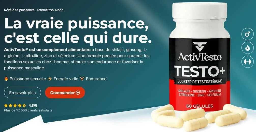 ActivTesto Testo Plus –Testo Plus : Avis détaillé et guide complet ActivTesto Testo Plus est un complément alimentaire conçu pour les hommes qui souhaitent améliorer leur vitalité, stimuler leur libido, augmenter leur endurance et soutenir leur énergie globale. La vie moderne, avec son stress, son rythme soutenu et ses responsabilités multiples, peut souvent entraîner une baisse de la vitalité, un manque de motivation et des troubles de la performance sexuelle. ActivTesto Testo Plus a été développé pour répondre à ces besoins, en combinant des ingrédients naturels et scientifiquement étudiés, ciblant à la fois l’énergie, la performance physique et la santé intime. ➥ Visitez le site officiel et commandez au meilleur prix ! Une approche globale de la vitalité masculine La conception d’ActivTesto Testo+ Avis Testo Plus repose sur une approche holistique visant à améliorer plusieurs aspects de la santé masculine : Énergie quotidienne et réduction de la fatigue : Les ingrédients énergisants permettent de soutenir le métabolisme et d’augmenter la vitalité. Endurance physique et sexuelle : Le produit aide à prolonger les efforts physiques et les performances intimes. Libido et désir : La formule favorise le maintien d’un désir naturel et soutenu, grâce à des nutriments qui stimulent les fonctions hormonales et la circulation sanguine. Équilibre hormonal : Des minéraux essentiels soutiennent la production et la régulation hormonale, un facteur crucial pour la santé masculine. Bien-être général : Une énergie retrouvée et une libido stimulée améliorent la confiance en soi, l’humeur et la qualité de vie quotidienne. Cette approche globale fait d’ActivTesto Testo Plus un produit adapté à un usage régulier, avec des effets progressifs et durables sur la santé physique et intime. Composition et ingrédients clés La force ActivTesto Gélules Testo Plus réside dans sa formulation, qui combine plusieurs ingrédients naturels reconnus pour leurs propriétés stimulantes et revitalisantes : Shilajit : Minéral naturel utilisé dans la médecine traditionnelle pour ses propriétés énergisantes et adaptogènes. Il aide à améliorer la résistance physique et à soutenir la vitalité. Ginseng : Plante adaptogène qui augmente l’endurance, réduit le stress et favorise la performance globale. L-Arginine et L-Citrulline : Acides aminés essentiels qui stimulent la circulation sanguine, contribuant à une meilleure performance physique et sexuelle. Zinc et Sélénium : Minéraux clés pour le maintien de l’équilibre hormonal et la santé reproductive masculine. La combinaison de ces composants vise à soutenir l’énergie, l’endurance et la libido de manière naturelle et progressive, tout en contribuant au bien-être général de l’homme. Les principaux bénéfices d’ActivTesto Testo Plus Augmentation de l’énergie et de la vitalité : Les ingrédients revitalisants réduisent la fatigue et permettent de se sentir plus actif tout au long de la journée. Endurance améliorée : La capacité à maintenir la performance physique et sexuelle est optimisée, permettant de prolonger les efforts et les moments de plaisir. Libido et désir stimulés : Le complément aide à retrouver un désir sexuel plus fort et une réactivité accrue, contribuant à une expérience intime plus satisfaisante. Confiance en soi renforcée : L’énergie et la vitalité retrouvées influencent positivement l’état d’esprit, la motivation et la confiance dans la vie quotidienne. Soutien hormonal naturel : Les minéraux et acides aminés présents dans la formule favorisent l’équilibre hormonal et la santé reproductive. Ces bénéfices expliquent pourquoi de nombreux hommes choisissent ActivTesto Gélules Testo Plus pour soutenir leur vitalité et prolonger la satisfaction dans leur vie intime. ➥ Visitez le site officiel et commandez au meilleur prix ! Témoignages et avis utilisateurs Les retours d’expérience sont essentiels pour évaluer l’efficacité réelle d’un produit. Les utilisateurs ActivTesto Testo Plus Testo Plus rapportent régulièrement : Une augmentation de l’énergie et de la motivation dès les premières semaines d’utilisation. Une endurance améliorée, tant dans les activités physiques que dans les rapports intimes. Une libido plus active, avec un désir accru et une réactivité améliorée. Une confiance en soi retrouvée, ce qui améliore la qualité de vie et des relations personnelles. Une satisfaction globale accrue, tant sur le plan physique qu’émotionnel. Certains utilisateurs soulignent que les effets peuvent varier selon l’âge, le métabolisme et l’état de santé initial, mais la majorité constate une amélioration notable avec un usage régulier. Conseils pour une utilisation optimale Pour tirer le meilleur parti ActivTesto Plus Avis : Respecter la posologie recommandée sur l’emballage. Adopter une alimentation équilibrée, riche en nutriments essentiels pour la vitalité. Pratiquer une activité physique régulière, qui renforce l’endurance et le tonus musculaire. Veiller à un sommeil de qualité, indispensable pour la récupération physique et mentale. Maintenir une bonne hydratation, qui optimise l’absorption des nutriments et l’efficacité des ingrédients. L’utilisation régulière et la combinaison avec un mode de vie sain permettent de maximiser les effets du complément sur l’énergie, la performance et le bien-être général. Prix et disponibilité Le prix des capsules ActivTesto Plus en pharmacie varie selon le nombre de capsules par flacon et les promotions disponibles. Le produit est généralement plus facilement accessible sur les plateformes de vente en ligne spécialisées dans les compléments alimentaires. En pharmacie, la disponibilité peut varier selon le pays et la chaîne de distribution. L’achat en ligne permet souvent de bénéficier de réductio