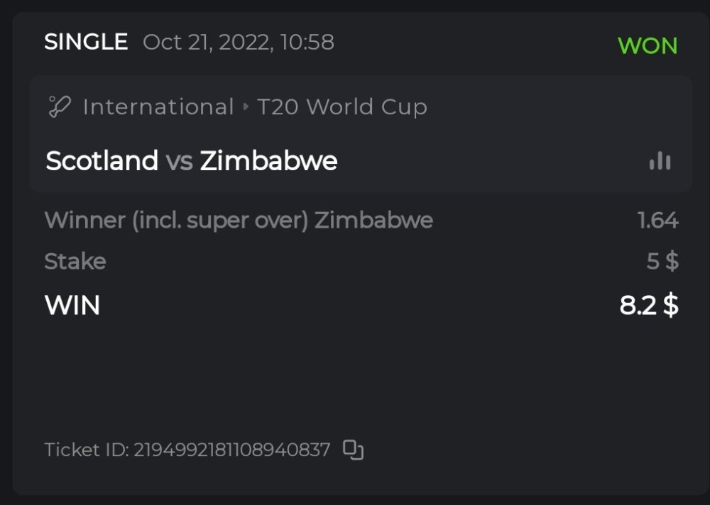 16. Hey @BCGame_Ninja, having read this I was wondering if we are allowed to make parlay bets other than just "Winner (Incl. super over)" markets for each game. I understand that we can't bet on 2 markets of the same game, but can we bet on "overs 0 to 10" on one game and "total run outs" of another game for example? Orrr did you mean you can't have multiple parlay bet wins that have the same game in either one of the parlay bets - that case only one parlay bet will be counted?