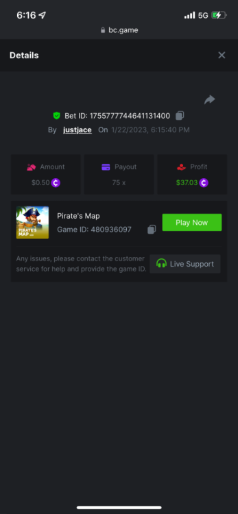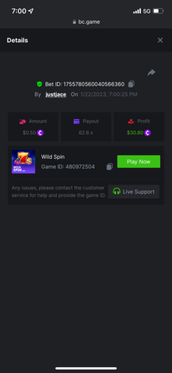 5.1x : https://bc.game/#/sd/1138ZN41M803RN 11x: https://bc.game/#/sd/1138ZWV6Q4I0IB 100x: https://bc.game/#/sd/113DU4H2V30MQB 180x: https://bc.game/#/sd/113DUHFTXSW4K3 63x: https://bc.game/#/sd/113E3M85OJT1XV -