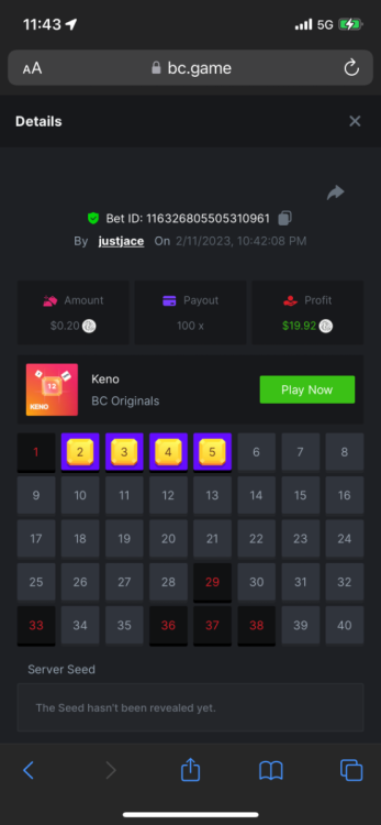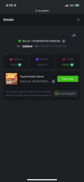 5.1x: https://bc.game/#/sd/118ROTNAR84R9V 8x: https://bc.game/#/sd/118RQVPP8BQYAB 11x: https://bc.game/#/sd/118RPW4RVZQVPV 56x: https://bc.game/#/sd/118RRFI8VER3TF 81.5x: https://bc.game/#/sd/118RS6P6T5KLJN 100x: https://bc.game/#/sd/118U0YISWJW5CJ